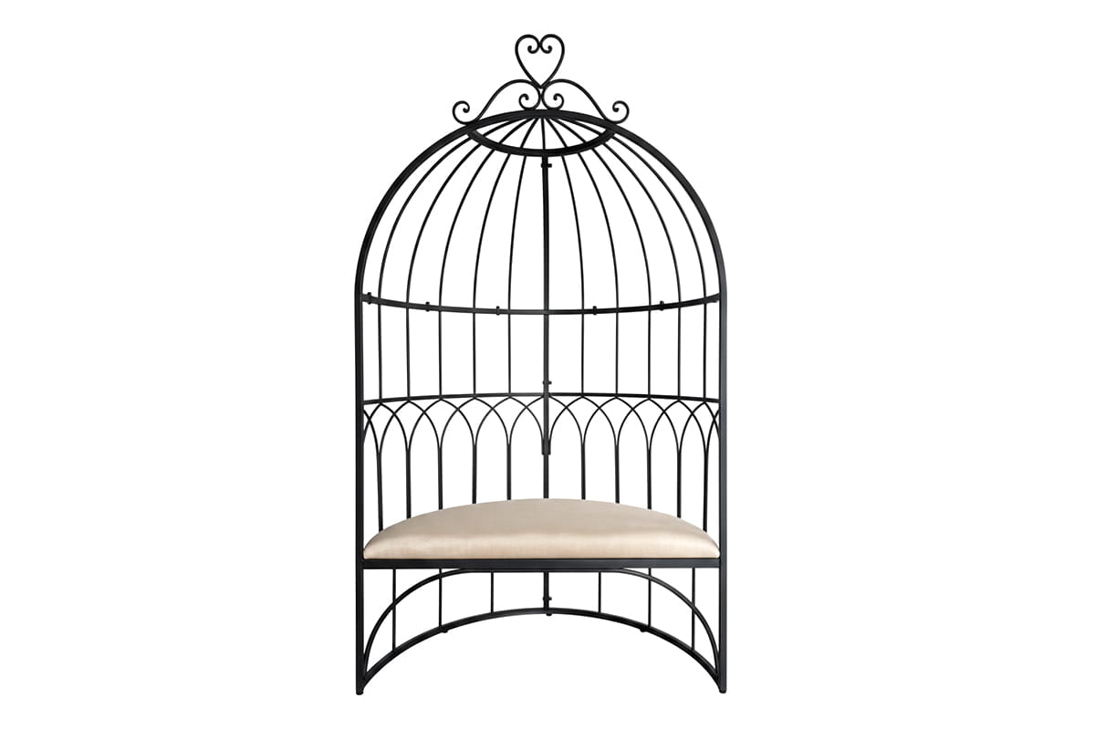 Ce banc est conçu pour briller lors des moments forts : il devient le point central d’une cérémonie de mariage pour l’échange des alliances, le trône des mariés ou un lieu symbolique pour les vœux. En fond de scène photo, il sublime les portraits romantiques, les séances couple, les shootings bohème ou artistiques. Son design cage à oiseaux invite naturellement à des poses tendres, complices ou théâtrales.
