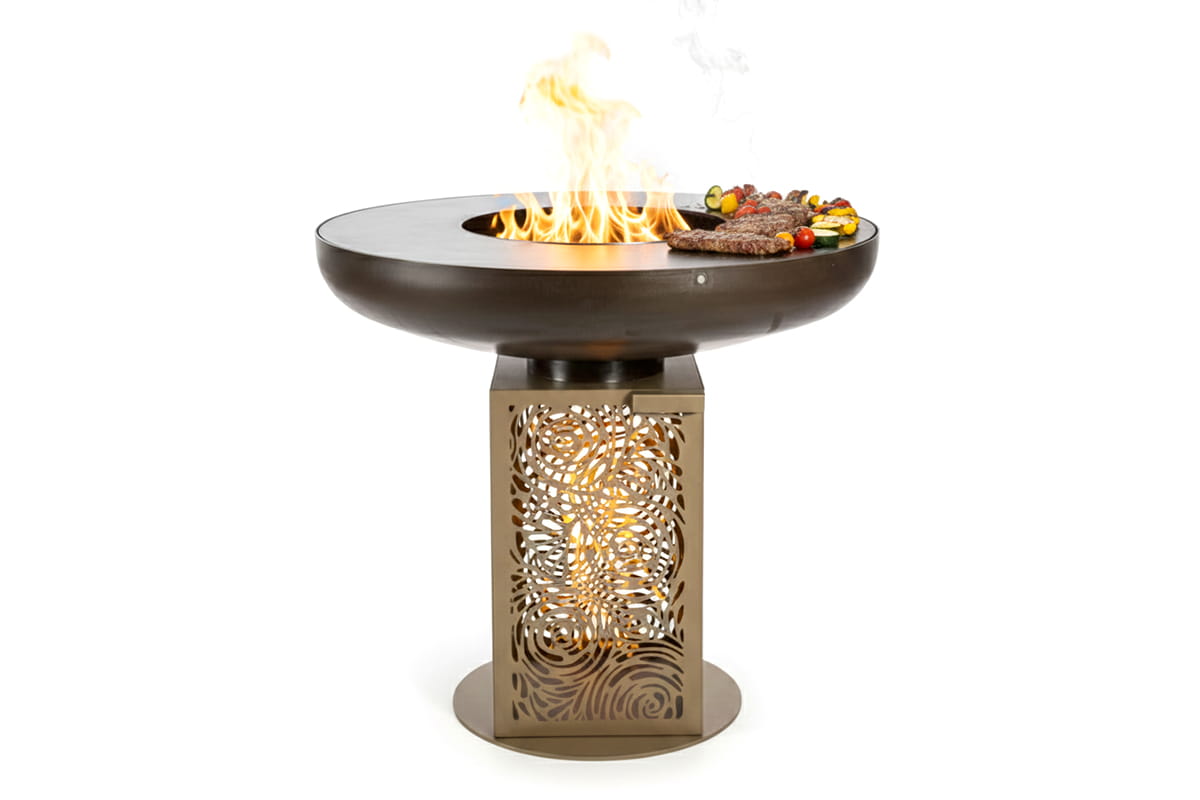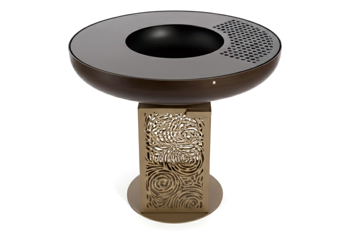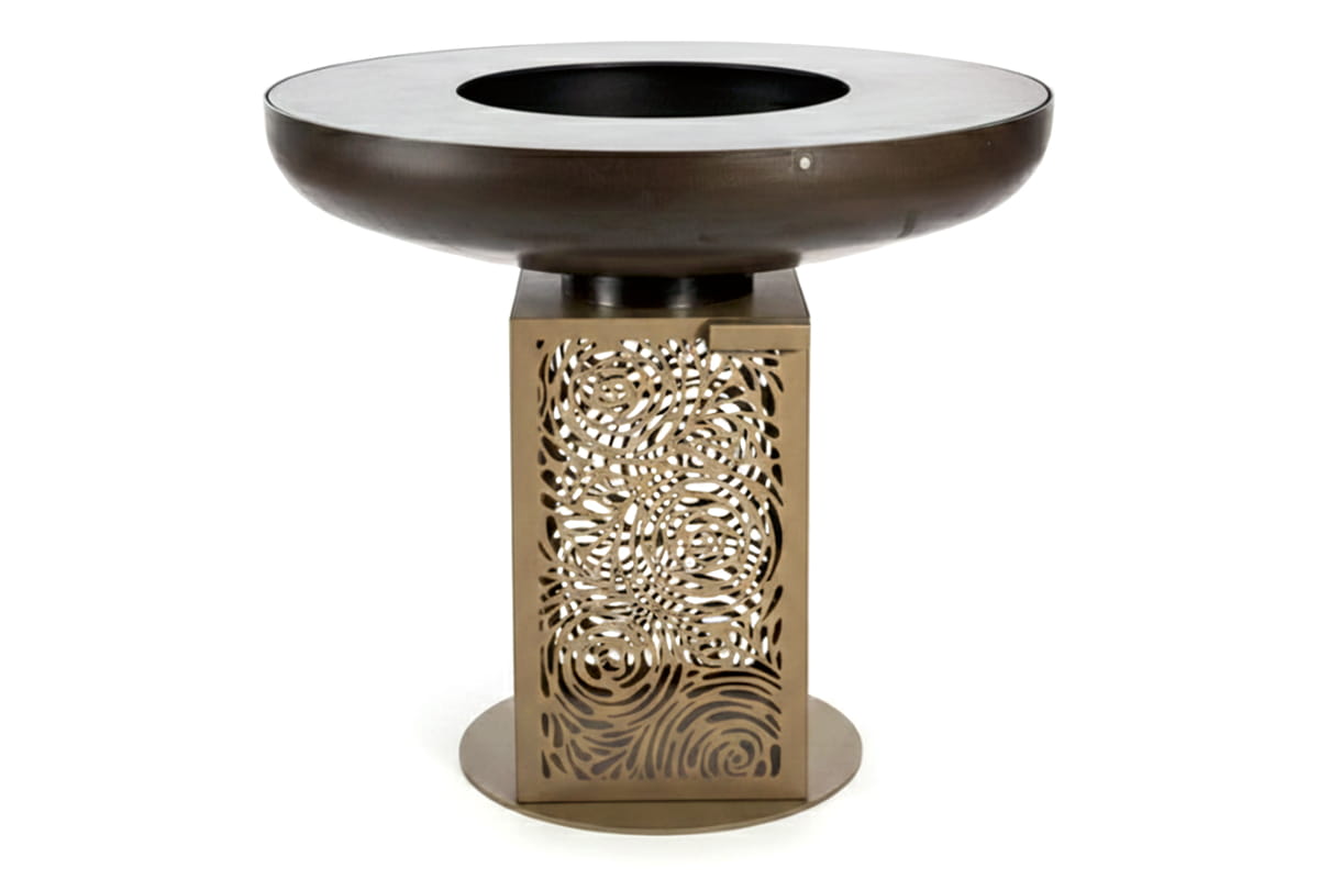 Sublimez vos soirées d’extérieur avec la location de ce brasero design ultra-élégant. Ce modèle haut de gamme combine un large plateau rond en métal bronze patiné. Mais aussi un foyer central profond et sécurisé, et un pied ajouré aux motifs floraux raffinés qui diffusent de magnifiques jeux de lumière. Allumé, il crée une ambiance chaleureuse et sophistiquée ; éteint, il reste un bel objet décoratif.
