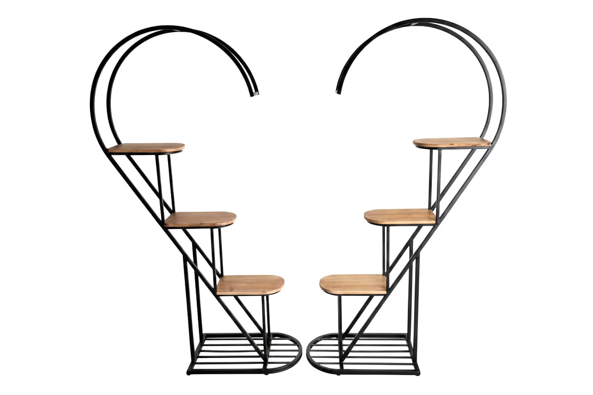 Créez un effet waouh instantané avec ce meuble cœur composé de deux pièces symétriques en métal noir forgé et plateaux en bois naturel chaleureux. Formant un grand cœur stylisé aux courbes élégantes, il atteint 174 cm de hauteur pour une présence imposante et poétique. Dimensions totales : 179 cm de largeur × 35 cm de profondeur × 174 cm de hauteur. Ce duo sculptural devient le point focal idéal de toute réception festive.