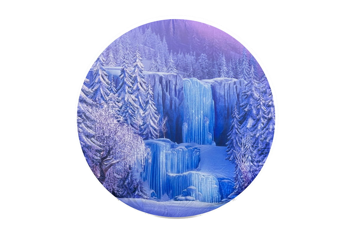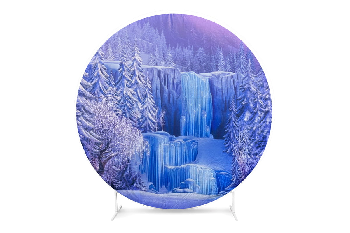 Location Backdrop Rond – Cascade Gelée en Hiver Enchanté