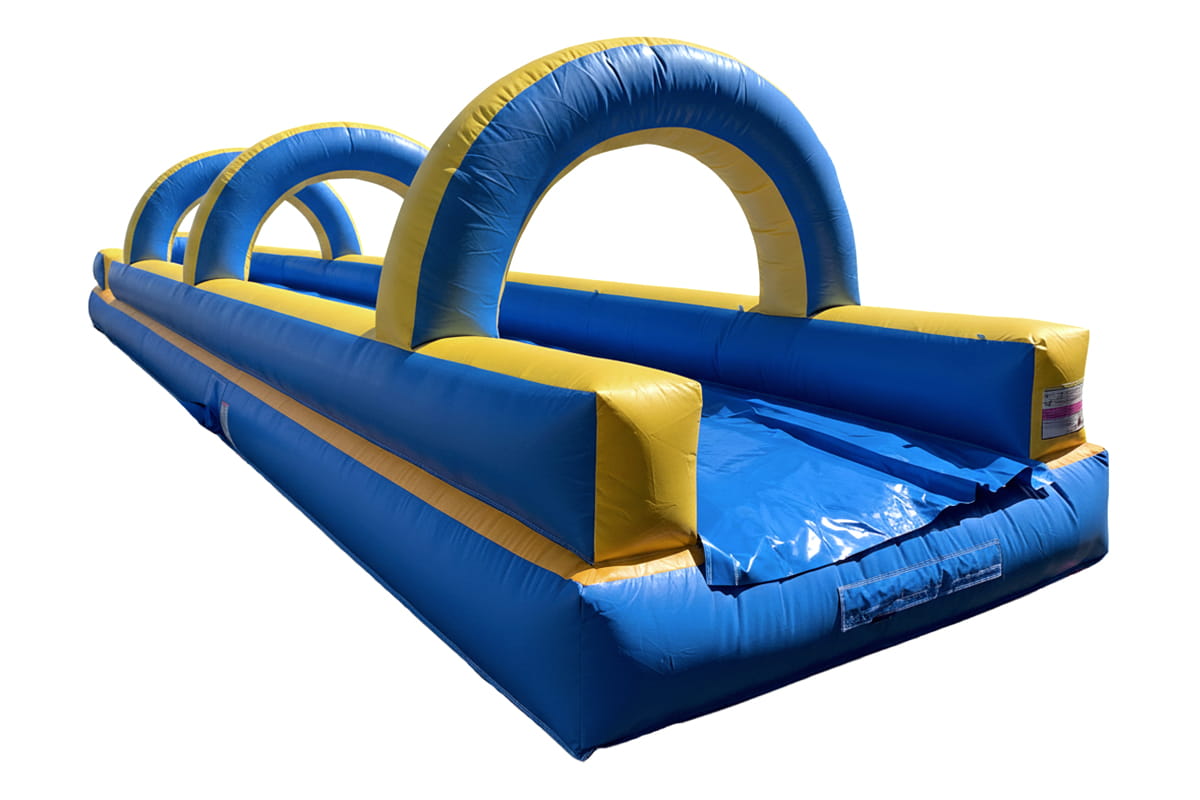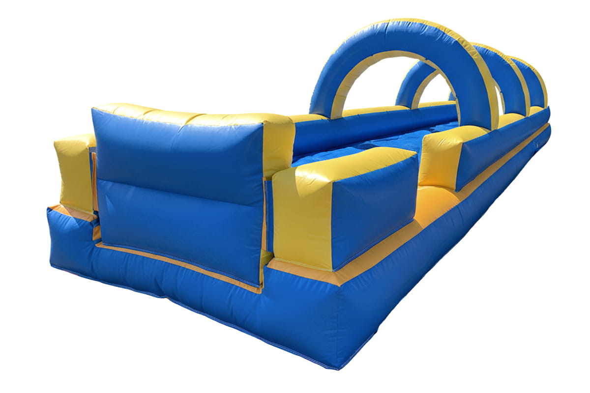 Envie de sensations fortes et de rires garantis ? Optez pour la location de ce ventriglisse gonflable spectaculaire de 13,50 mètres de long ! Avec ses arches bleues et jaunes impressionnantes, cette structure aquatique attire tous les regards. Parfait pour les fêtes d’été, anniversaires, kermesses ou team building, il transforme n’importe quel jardin ou espace extérieur en zone de glisse déjantée. Le ventriglisse propose une piste large et sécurisée où l’on glisse à plat ventre sur une surface mouillée et savonneuse pour des descentes ultra-rapides et fun.